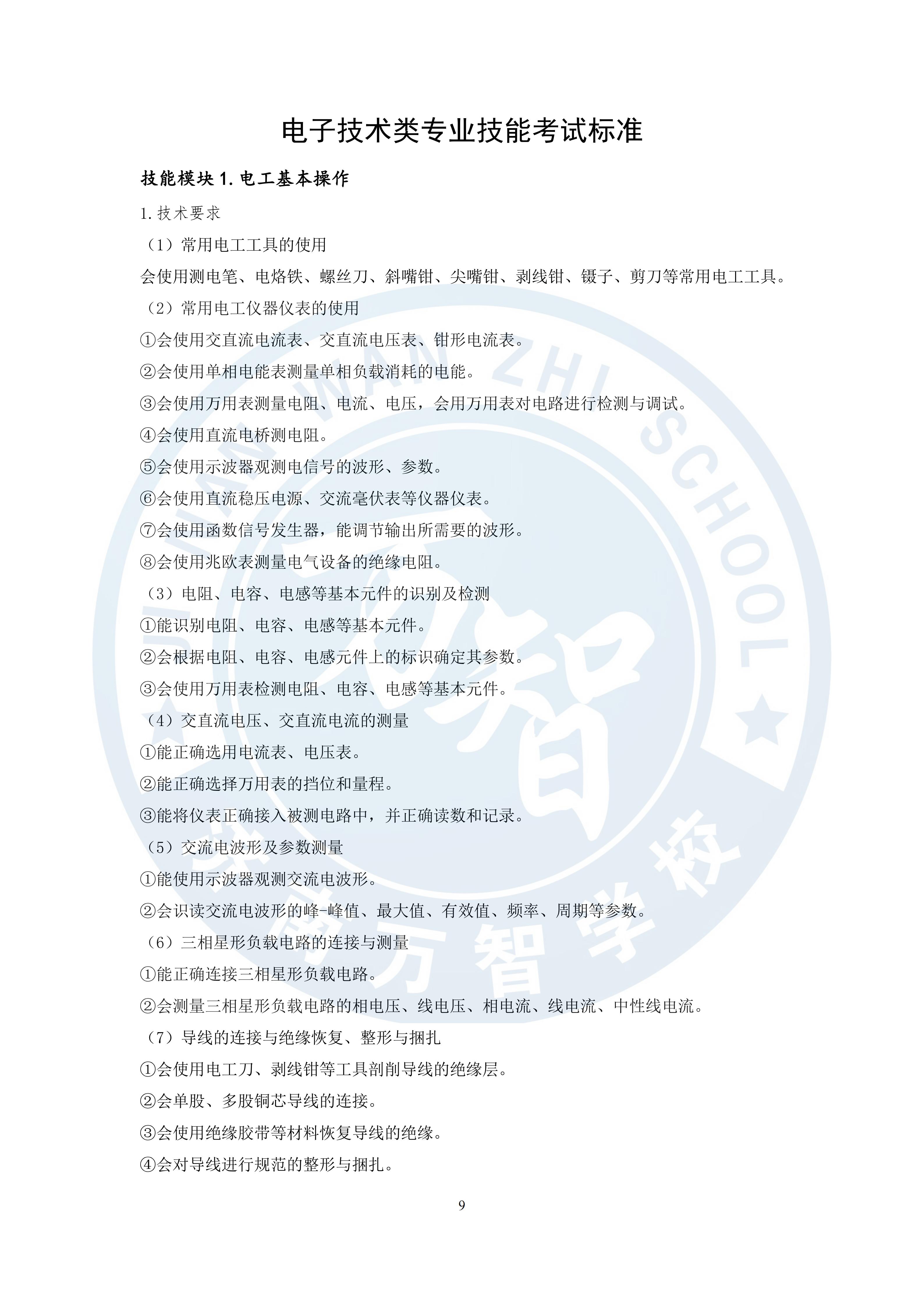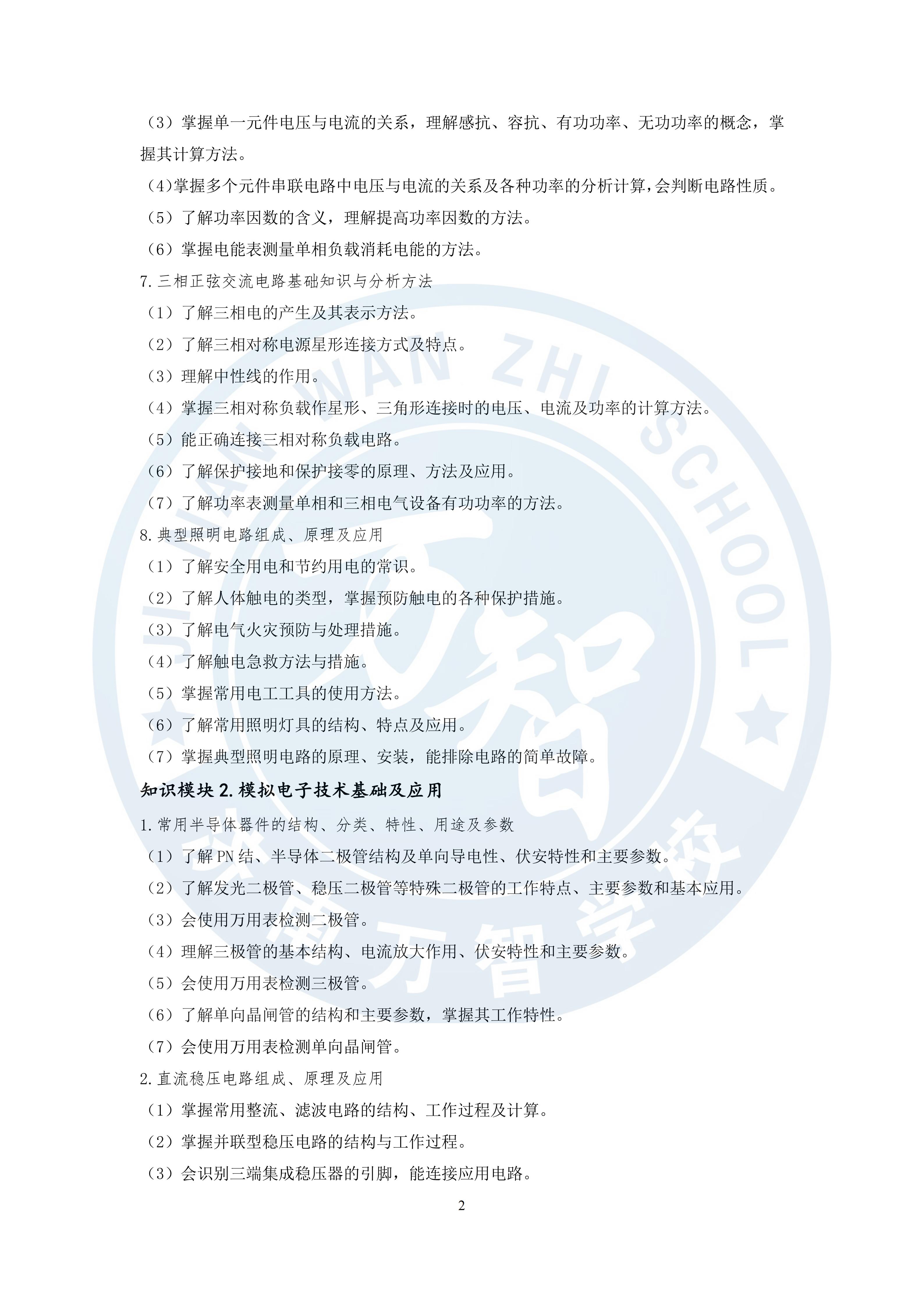 2017年山东春季高考电工电子类专业技能考试大纲