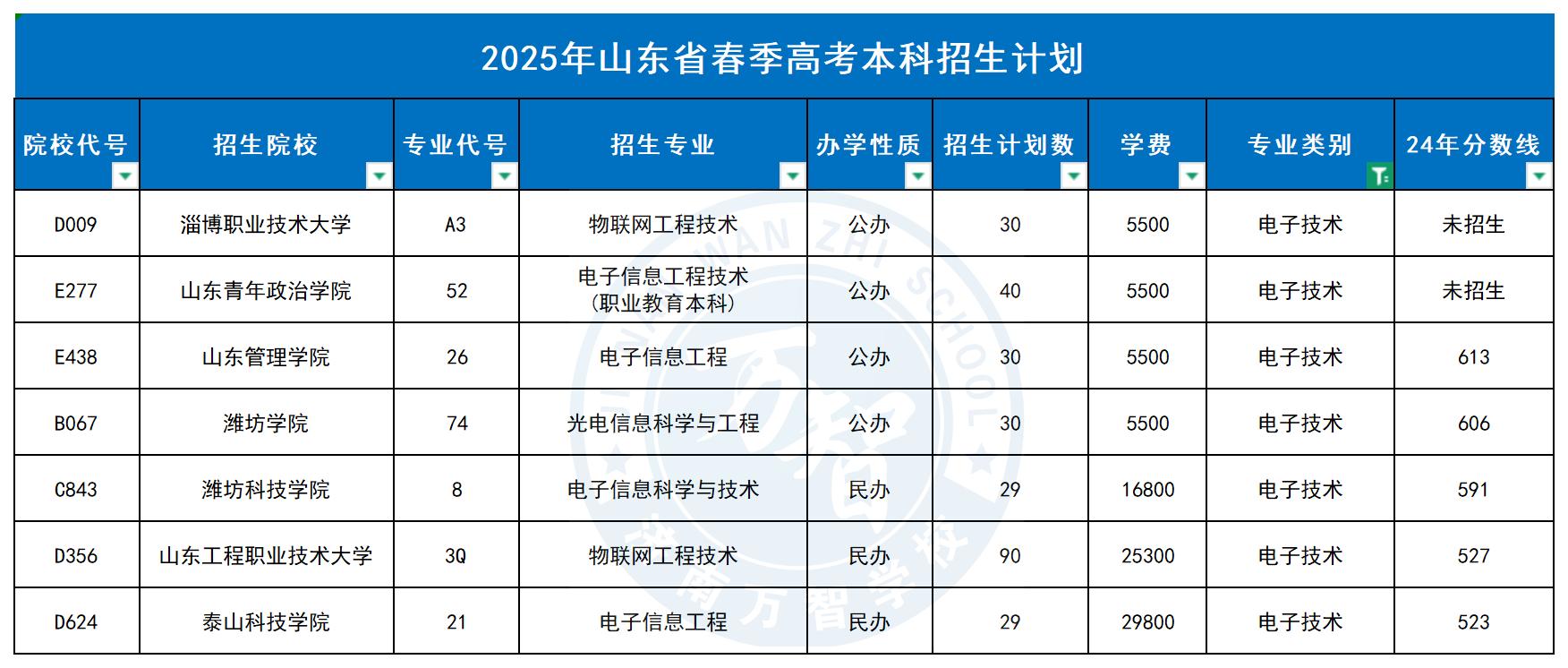 电子技术专业本科招生院校。完整版的2025年山东省