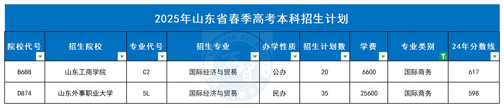 国际贸易专业本科招生院校。完整版的2025年山东省
