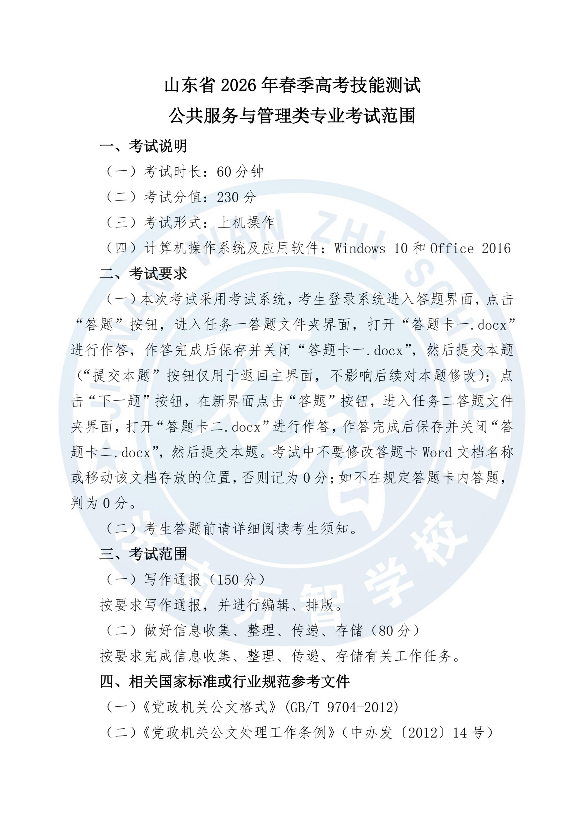 26年春季高考公共服务与管理类技能测试考试范围