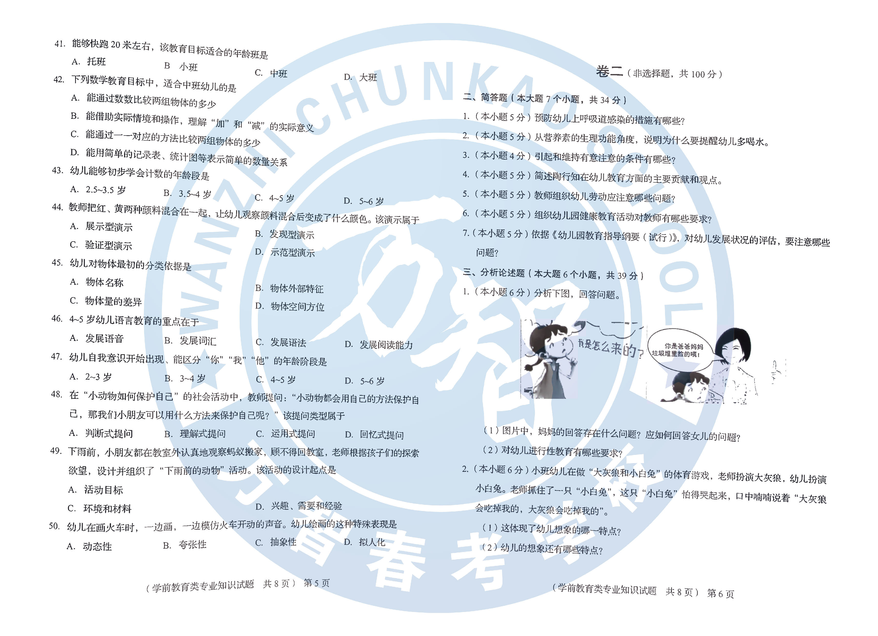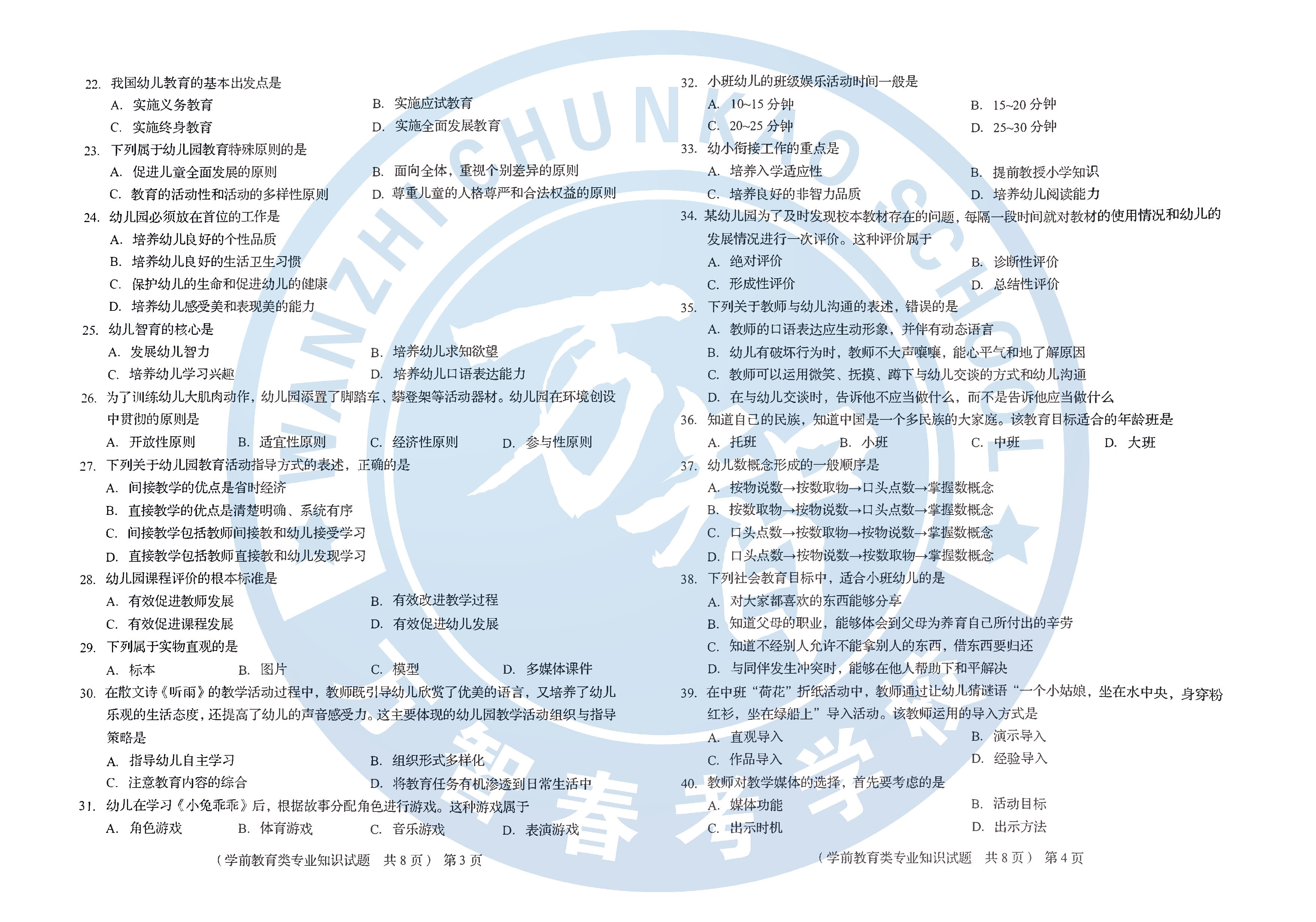 2020年山东春考学前教育专业理论考试试题