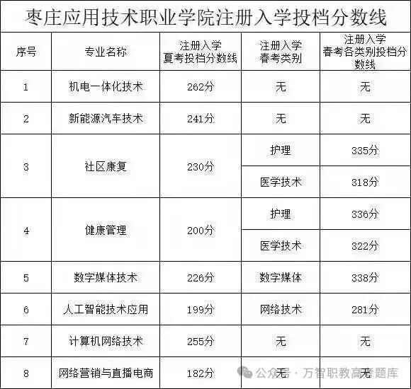 2025年枣庄应用技术职业学院注册入学投档分数线